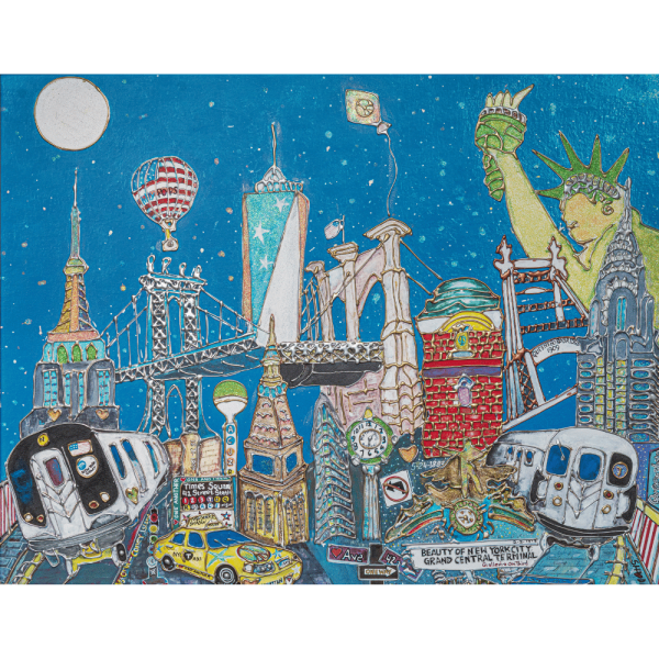 Shadin eventually returned to his own artistic roots, creating 3-D collage pieces that combine pop art and folk art influences. His work gained widespread attention, earning him recognition as “New Yorker of the Week” in 2011. In addition to his art, Shadin has used his success to give back, hosting charity events that support organizations like World Vision and Smile Train, showcasing his commitment to making a difference.